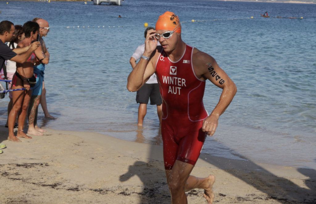 Für das 1.9 km Schwimmen im Meer und den 45 km langen Radkurs mit über 450 Hm benötigte Winter 1:45:31 Std .