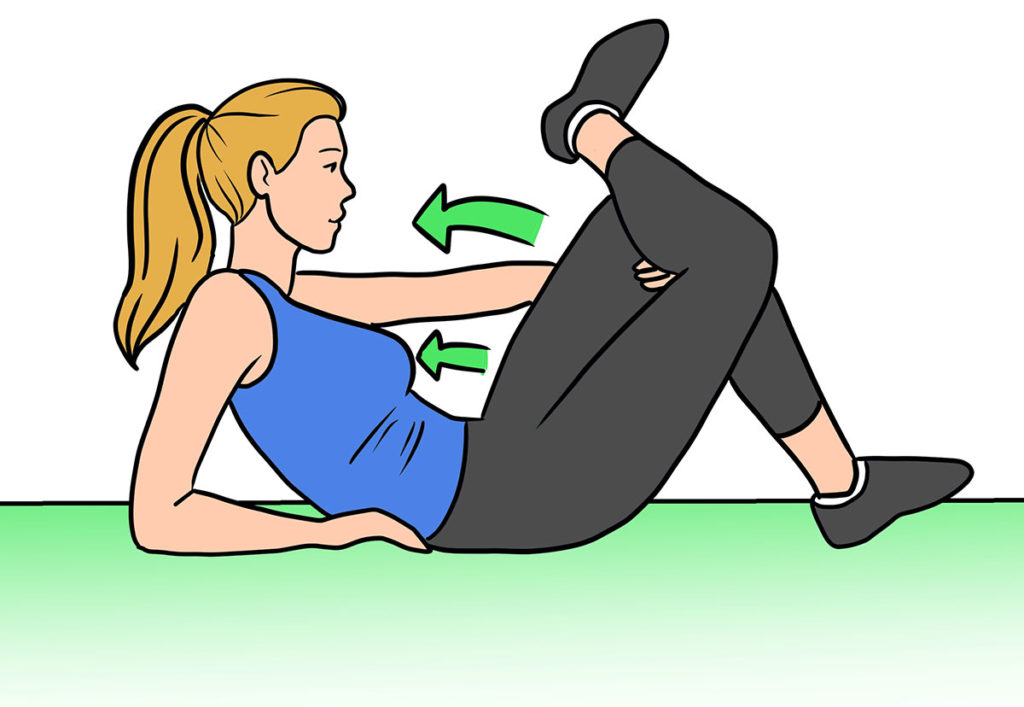 Übung: Lege dich mit angewinkelten Beinen auf den Rücken. Hebe den rechten Fuß vom Boden und lege den rechten Knöchel auf den linken Oberschenkel. Lasse dein rechtes Knie zur Seite fallen. Greife mit beiden Händen das linke Schienbein oder hinter den Oberschenkel und ziehe beide Beine in deine Richtung. Kippe ein wenig nach links und umarme deine Beine enger. Verzerrst du das Gesicht, hast du deinen Piriformis gefunden.