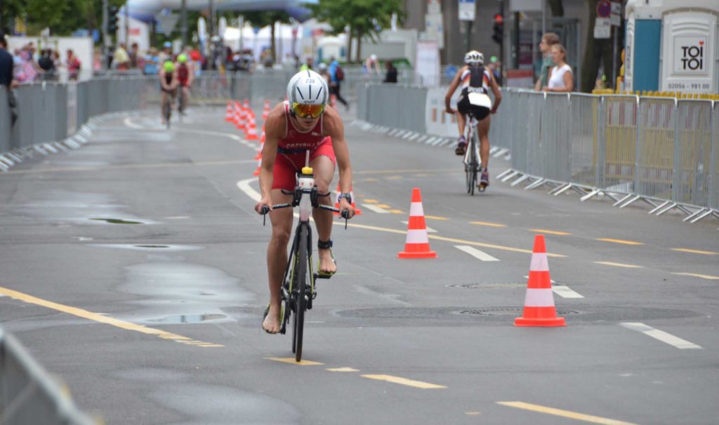 Während in Österreich die Hitzewelle kein Ende kennt, gingen heute die Sprint-Triathlon Europameisterschaften der Age Group Athleten in Düsseldorf bei regnerischem Wetter über die Bühne. Trotz einem sehr warmen Rhein entschieden die Wettkampfrichter aufgrund der Aussentemperatur auf Schwimmen mit Neoprenanzug. Nach 750 Metern im Hafen ging es über 66 Stiegen in die zweite Wechselzone. Die flache Radstrecke hatte einige technische Passagen und Kurven, die zu zahlreichen Stürzen führten.