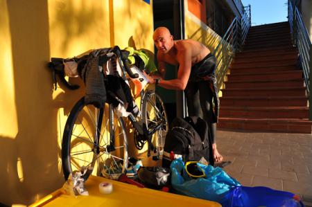- Planst du dich in der Wechselzone auch umzuziehen, lege dein Radgewand auf das Fahrrad und dein Laufgewand über deine Laufschuhe.